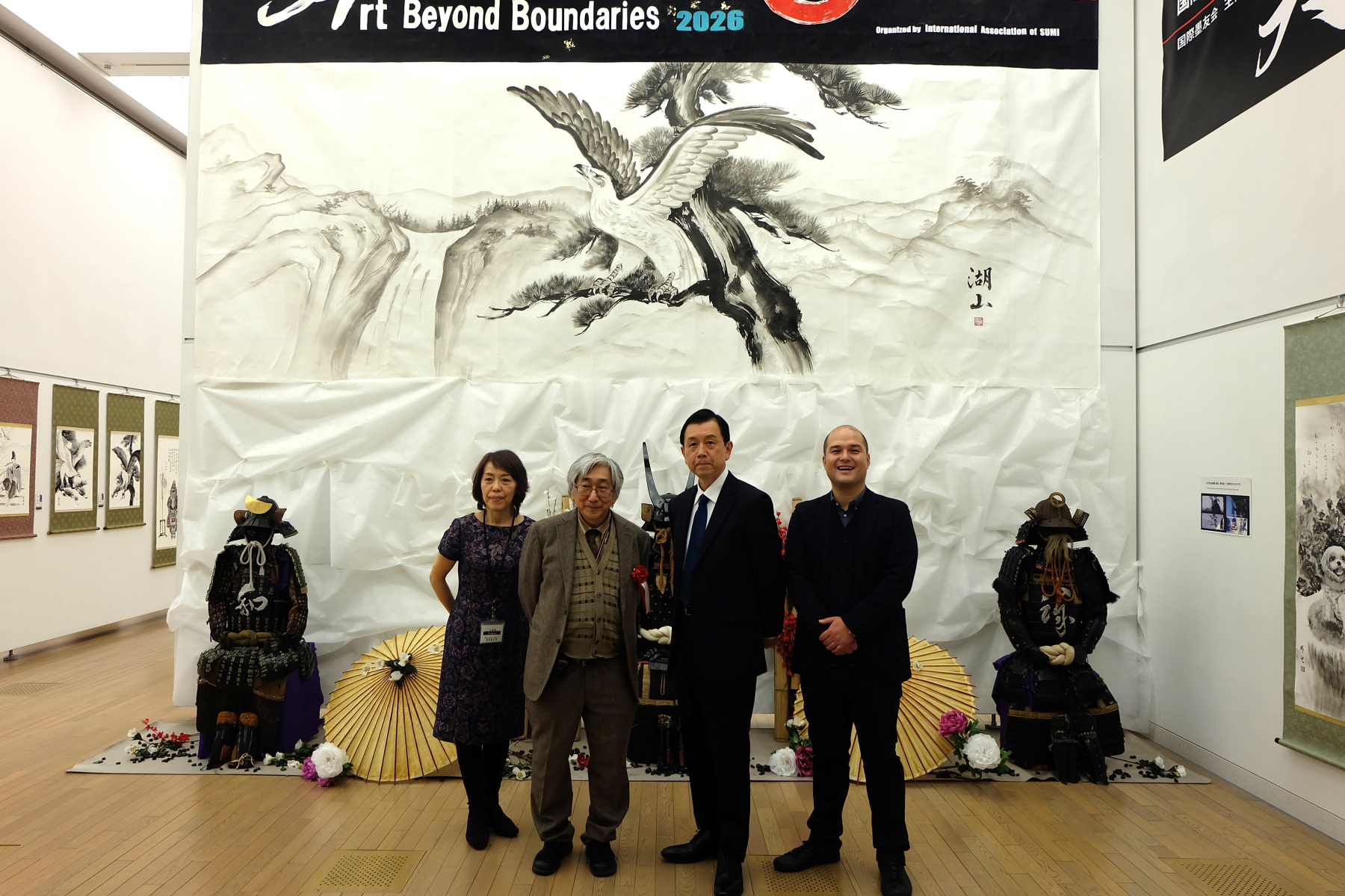 「美は国境を越えて2026」は、アジアの芸術表現として深い伝統を持つ墨絵を中心とした展覧会としてスタートしました。その後、国際的な文化交流の広がりとともに、ジャンルや国境を越えた作品が集まるようになりました。本展では、絵画、書、立体造形、デジタル出力など、さまざまなジャンルの作品が展示されています。