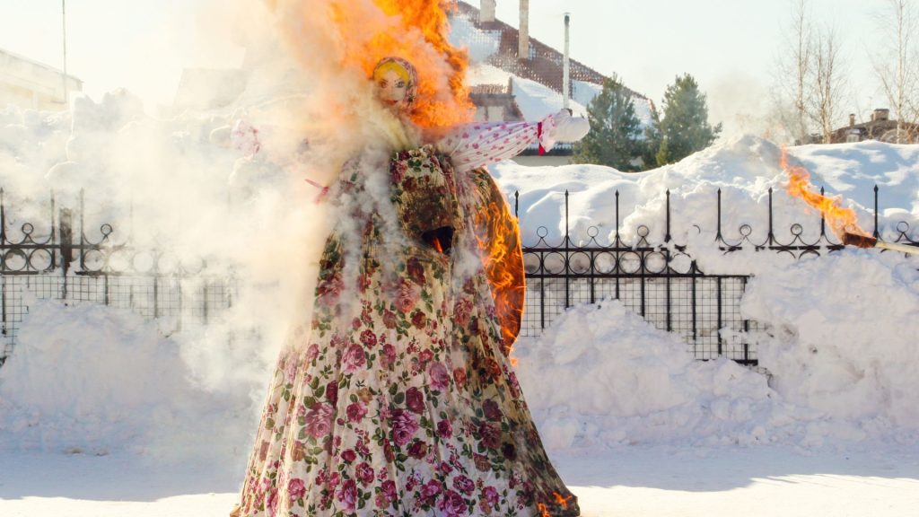祭りの最後には、冬を象徴するわら人形を燃やす儀式が行われます。この火は寒い季節との別れと、自然の再生への願いを表しています。現在では伝統行事として楽しまれていますが、その象徴的な意味は今も受け継がれています。